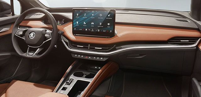 Ein Highlight des ŠKODA ENYAQ iV ist sein innovativer Innenraum: Er vermittelt ein völlig neues, großzügiges Raumgefühl. Außerdem ist das Fahrzeug mit den modernsten Konnektivitäts- und Infotainmentlösungen ausgestattet: Auf einem freistehenden, zentralen 13″-Display kann der Fahrer alle wichtigen Informationen sehen, optional erhältlich auch in Kombination mit einem Head-up-Display mit Augmented Reality. Dank einer permanenten Internetverbindung sind alle Informationen stets auf dem neuesten Stand.